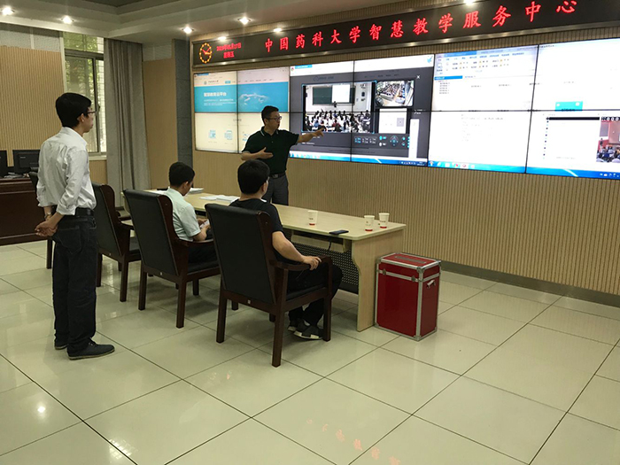 2019年5月17日,南京交通職業(yè)技術(shù)學(xué)院一行五人在我司相關(guān)人員的陪同下,參觀(guān)了中國藥科大學(xué)智慧教室、報告廳、微課制作室,詳細了解我司智慧教育云平臺的運作流程。